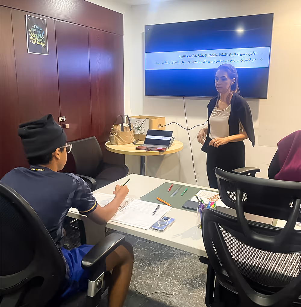 We focus on understanding and confidence, not rote memorization , using visuals, patterns, and real-life examples to make Arabic easy and enjoyable.